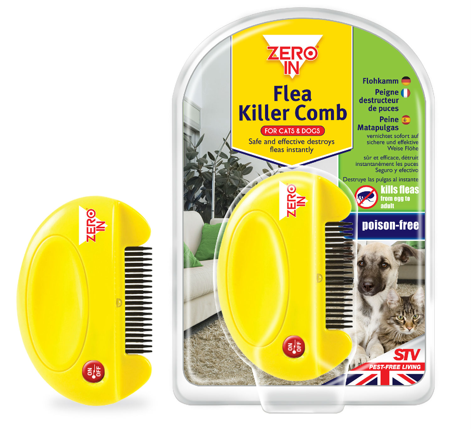 "- Safe and effective flea and tick control on cats and dogs - Kills and removes fleas at adult, egg and larva stages - Delivers harmless electrical charge to coat - Push-button control, ergonomic and fitting design"