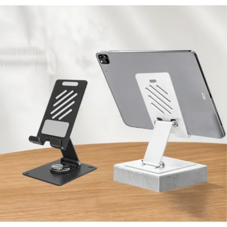Iron + Silicone Color:Black/White Enhance your digital experience with the Rotary Tablet/Phone Stand Holder, crafted from durable iron and soft silicone. This stand is available in sophisticated Black and clean White, combining practical functionality with a modern aesthetic to accommodate both tablets and smartphones.