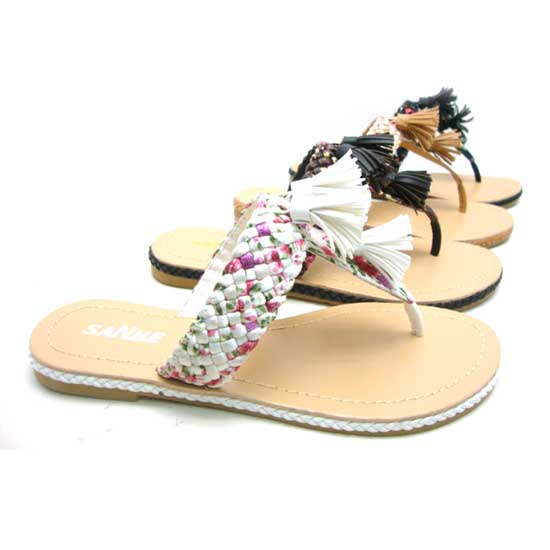 Outlined here is a flip flop made for ladies. The braided design adds a stylish touch to the flip flop. It is a great choice under the sun or on vacation.