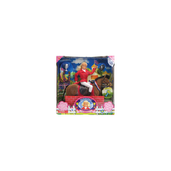This is a flocked horse jumping set that features a horse and a lady who is riding on it. The vivid and realistic appearance appeals to children instantly. This set is great as a gift for your beloved child.