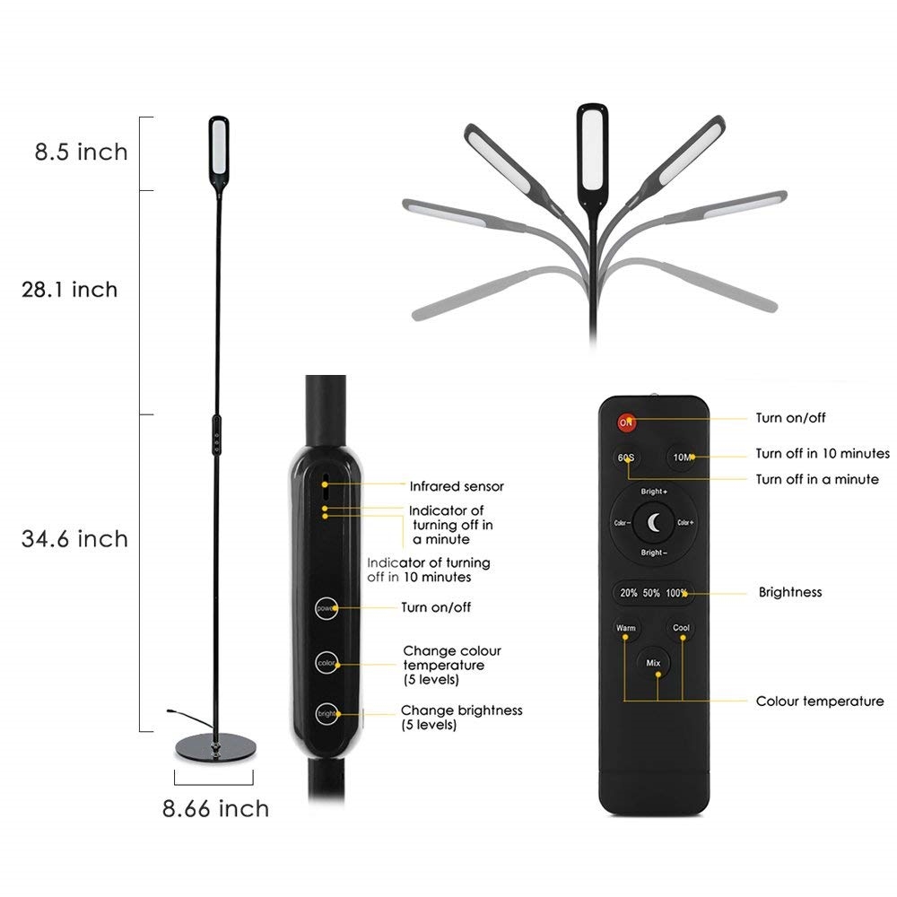 - METER SUN F20 Floor LED Lamp for Reading, Dimmable Gooseneck, Touch & Remote Control ,9W