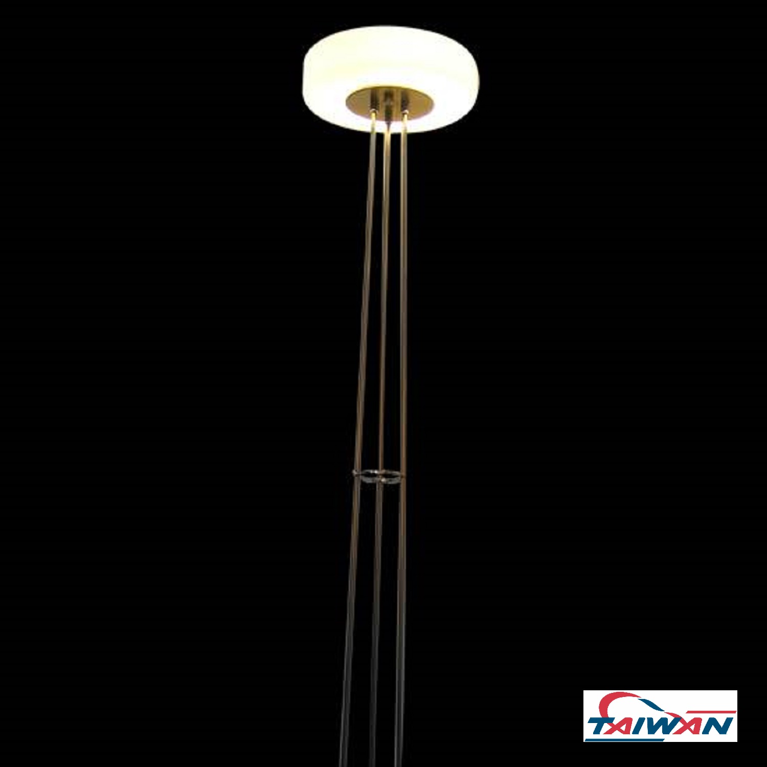 A floor lamp with a comtemporary design. It has a tripod stand made of chrome. Type shaped lamp shade with satin finish. Great decorative lighting for any household.