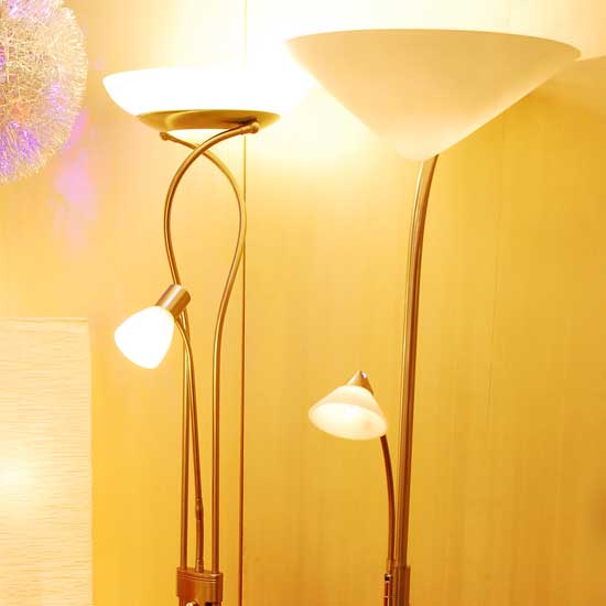 The floor lamp gives a warm glow with the color combination of golden and white. Employing the beauty of space and curves, this featured floor lamp is simply stunning in style. The floor lamp demonstrates the perfect balance between beauty and function.