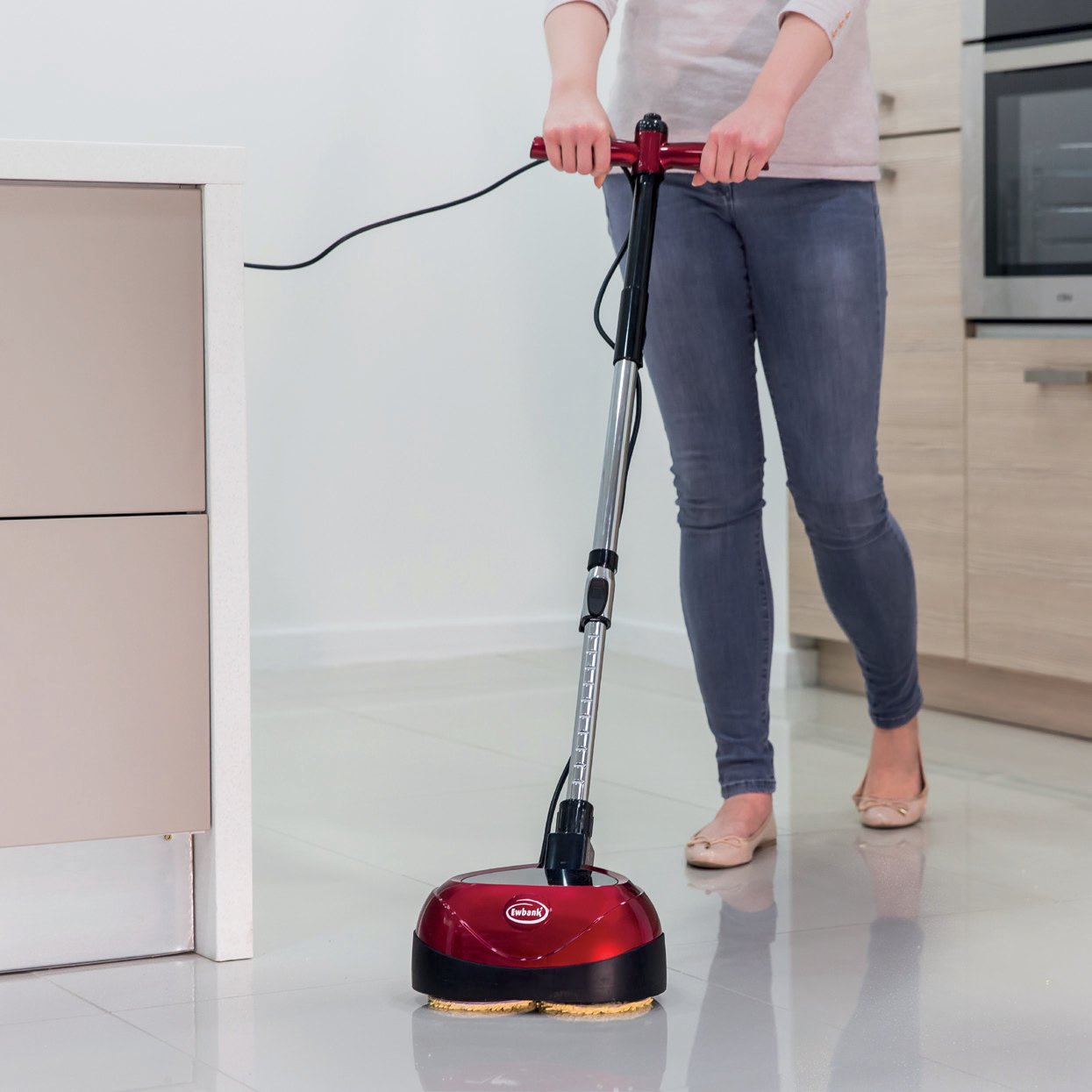 - Telescopic butterfly handle for single or dual handed operation 2,200rpm contra- rotating discs 24cm wide polishing/cleaning path