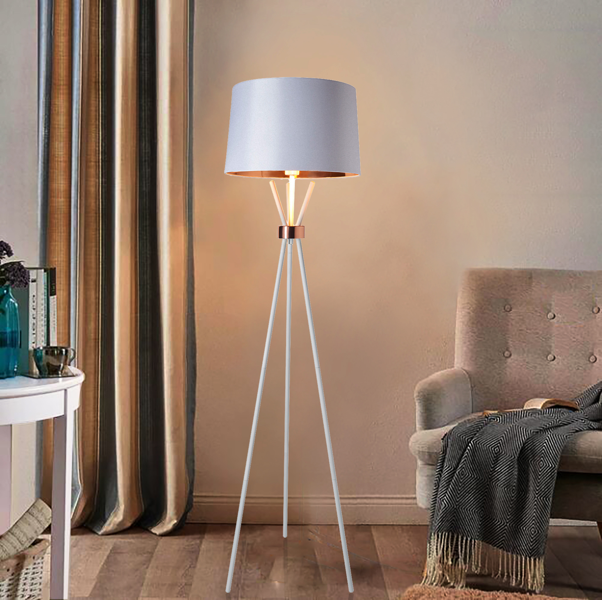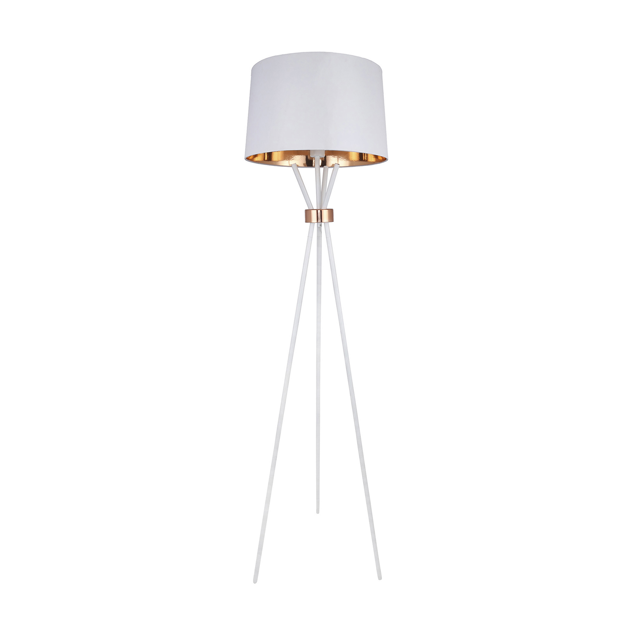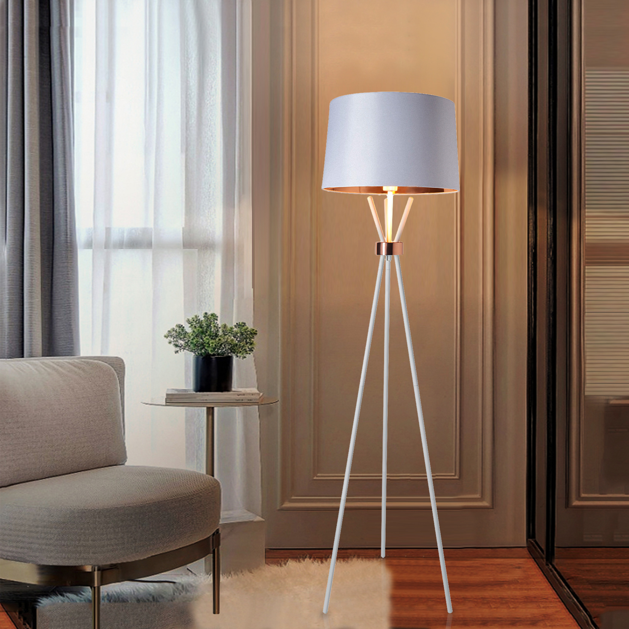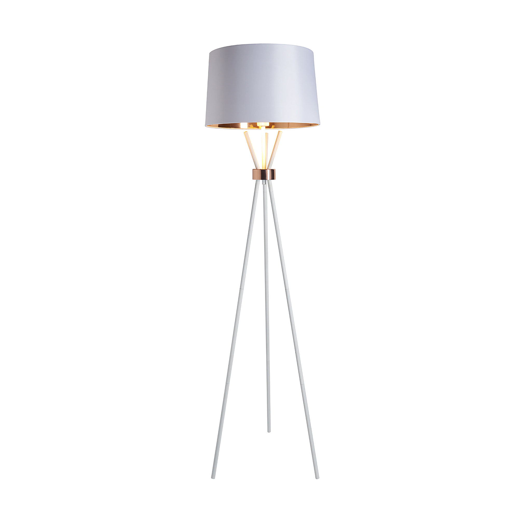 Standing on three jet black legs that are bound together with a metallic gold ring, this Camden Tripod Floor Lamp is sophisticated and slender. Emanating modern refinement, this floor lamp is complemented by an enchantingly dark shade with reflective inner gold for a contemporary, ambient glow.