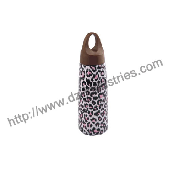 The presented water flask flaunts a leopard design for a wild yet chic look. The lid features an oval keyhole for easy attachment. The stainless steel construction allows lasting use.