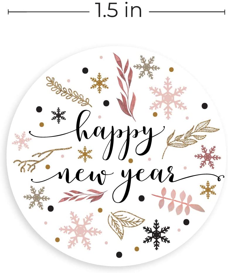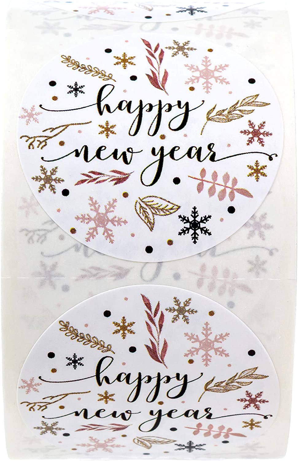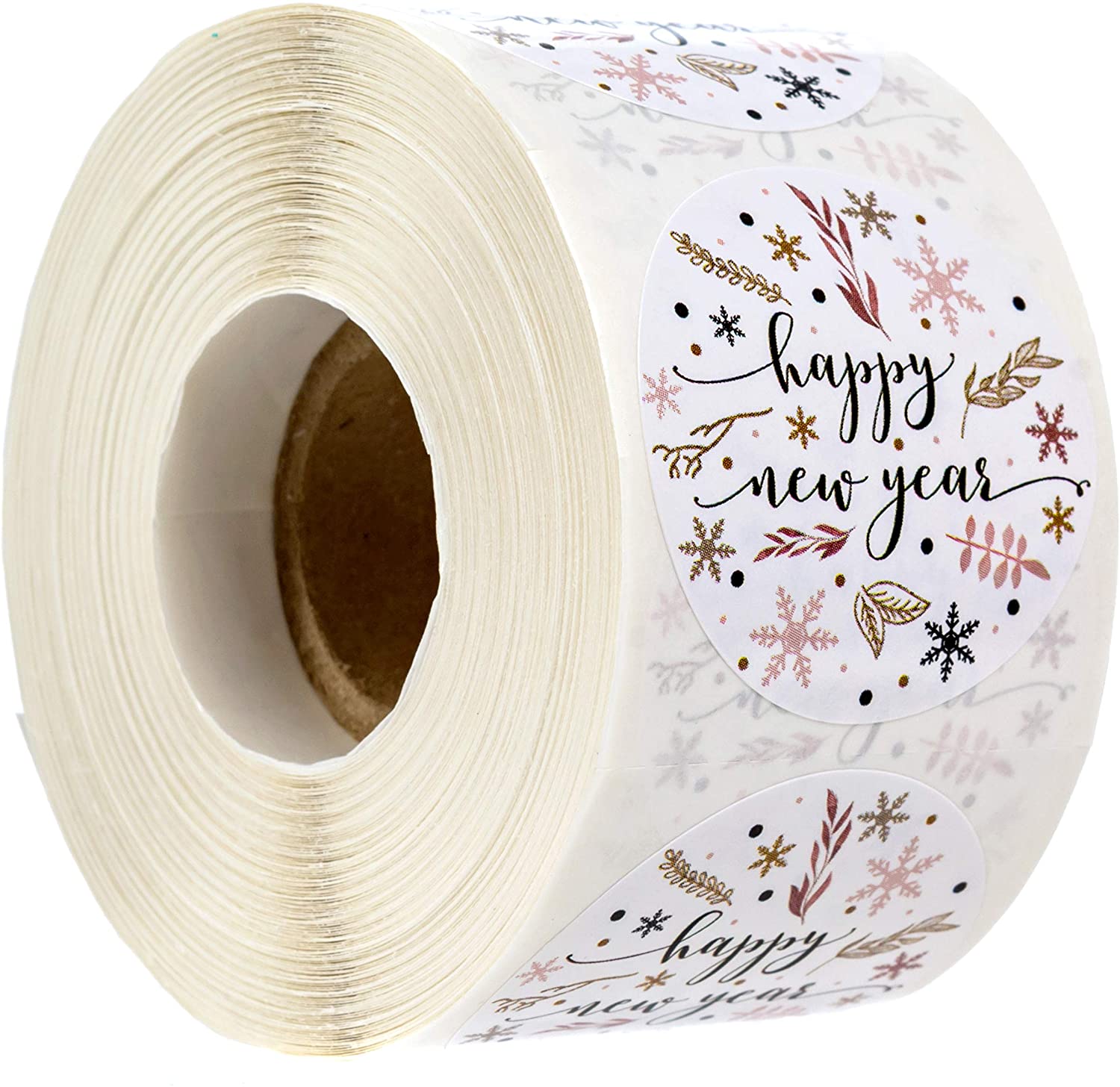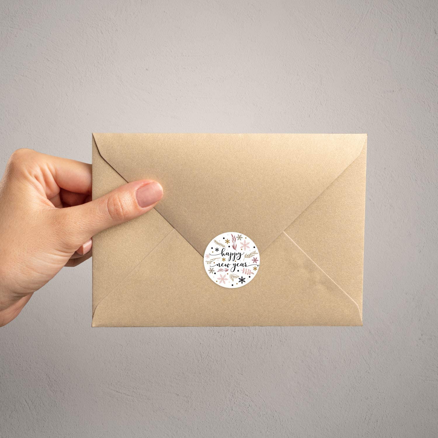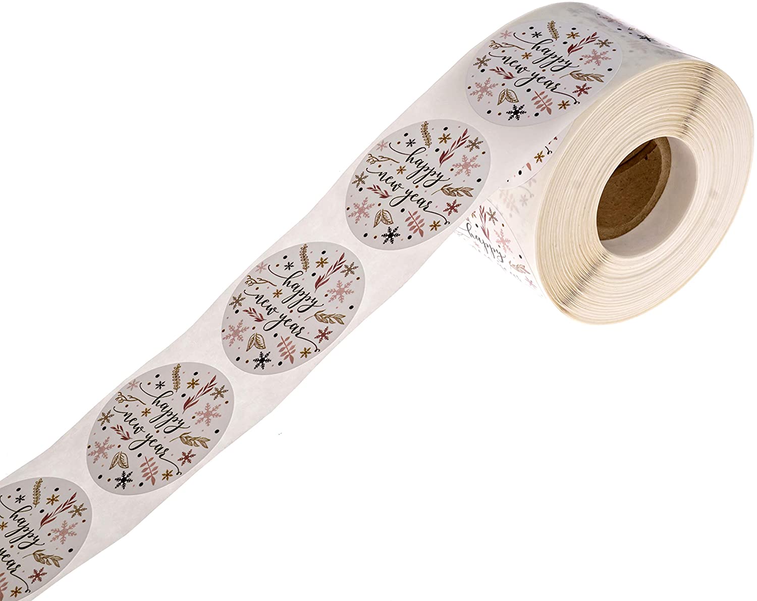 Each Happy New Year label features a permanent adhesive that sticks to paper, plastic, cardboard, bags, fabric and glass.