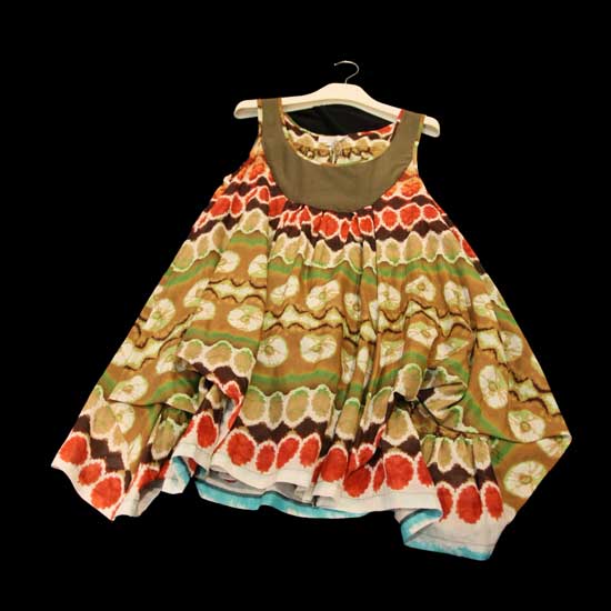 The outlined ladies’ sundress is a perfect choice for hot summer days. This A-line dress flares from the bust line, making it ideal to camouflage wide hips. It is accented with cute colorful patterns all over.