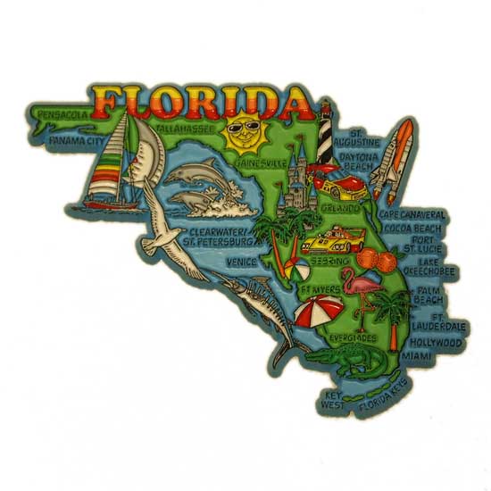 This magnet features a Florida theme with a vivid scene of a beach, sailing boats and seagulls. Made of plastic, the magnet is ready to service for a long period. This enchanting magnet makes a convenient choice to stick memos on your fridge.