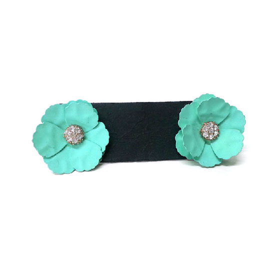 This pair of earrings is painted with a refreshing mint color. It is adorned with rhinestones for a sparkling touch. This youthful pair is best for the spring and summer seasons.