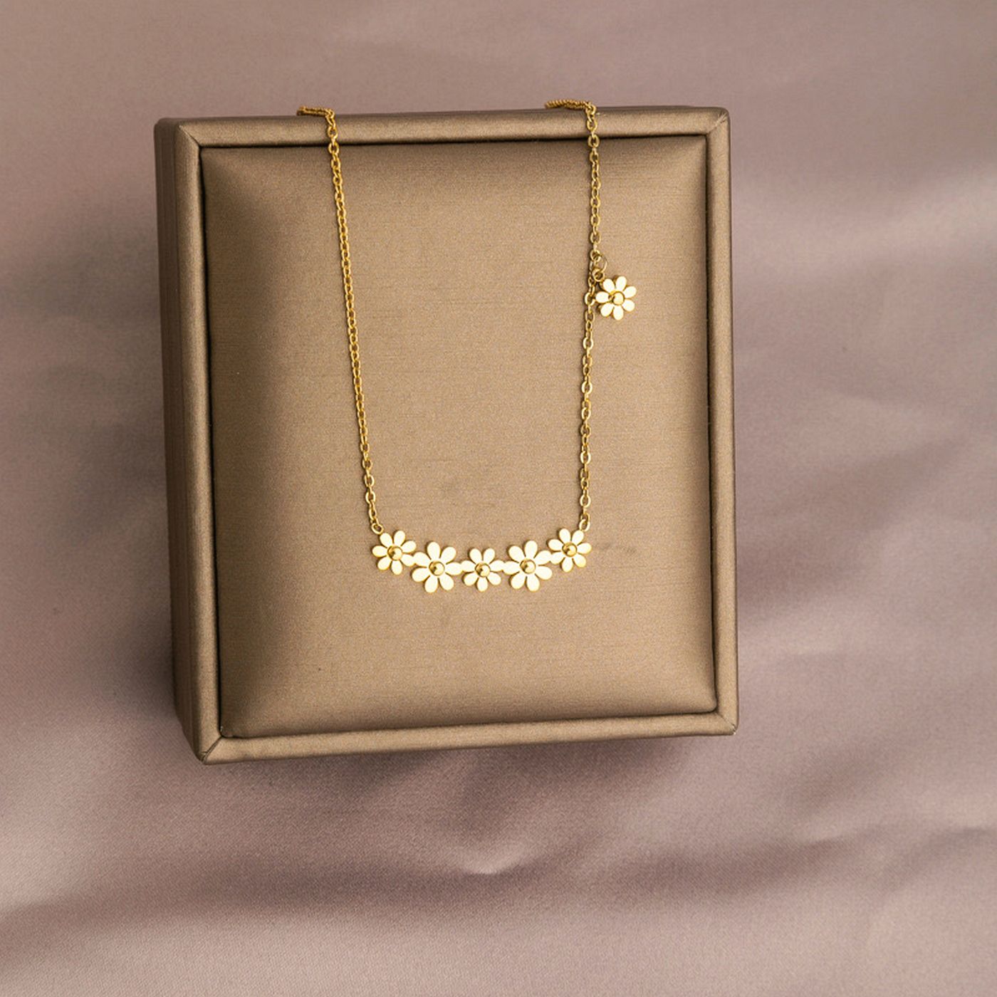 As shown is a high-fashion stainless steel necklace with flower pendant.