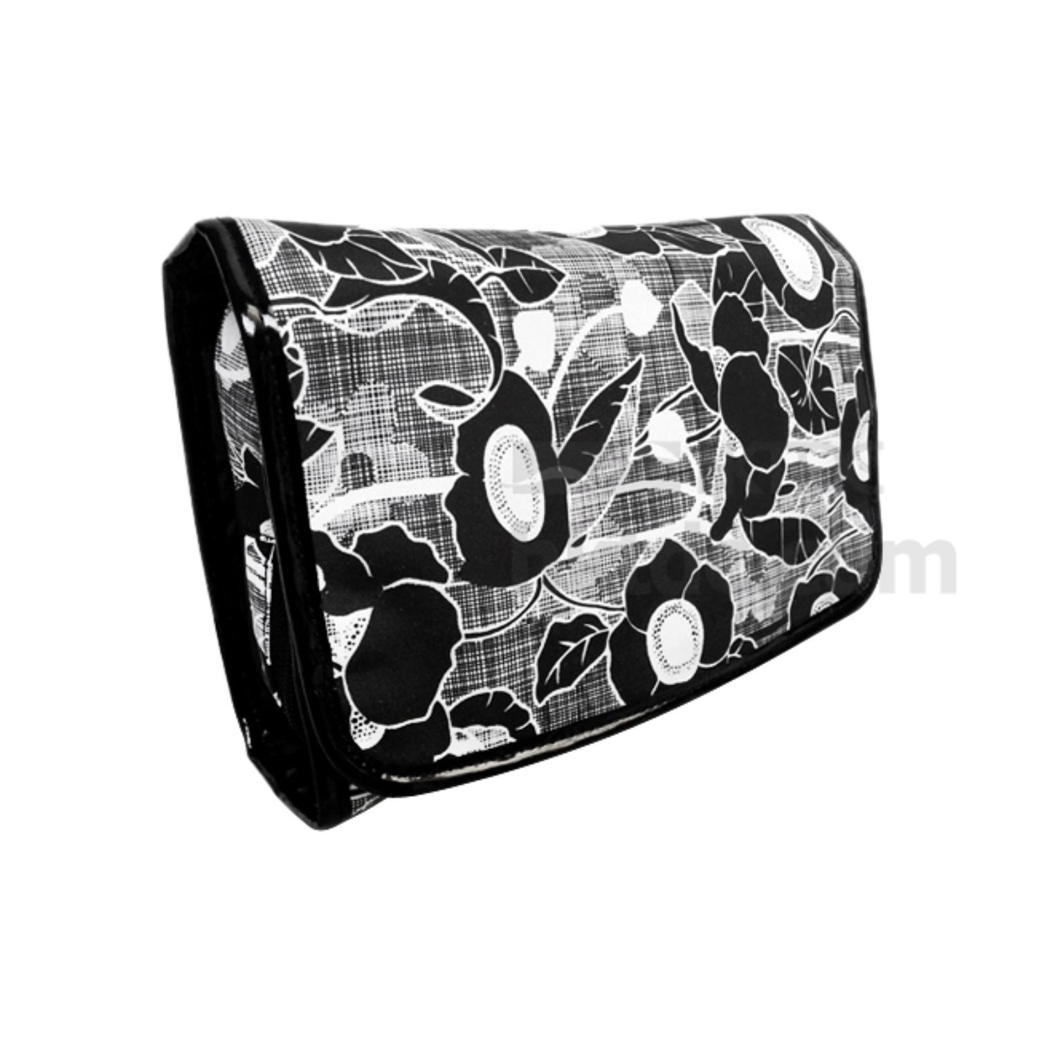 Flower printed micro fiber with patent PVC cosmetic bag.