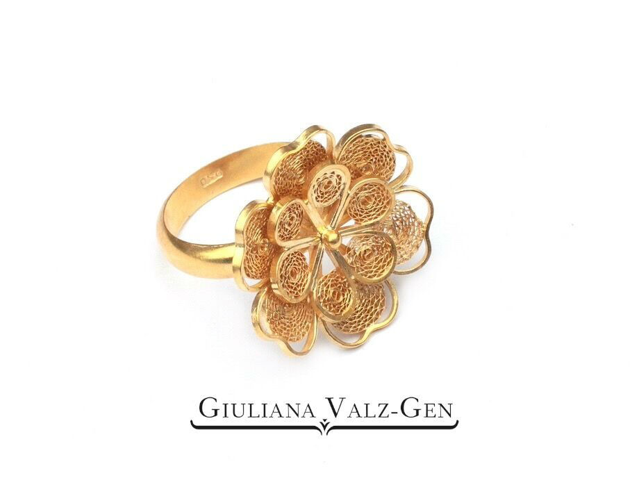 Gold plated flower ring, 925 silver plated in 21 carat gold
