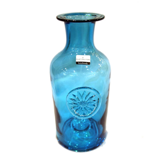 This flower vase comes in a glass bottle shape in transparent blue. The body is crafted with a delicate flower enclosed in a circle for extra glamor. This flower vase is an ideal decoration spice up your living room with your personal taste.