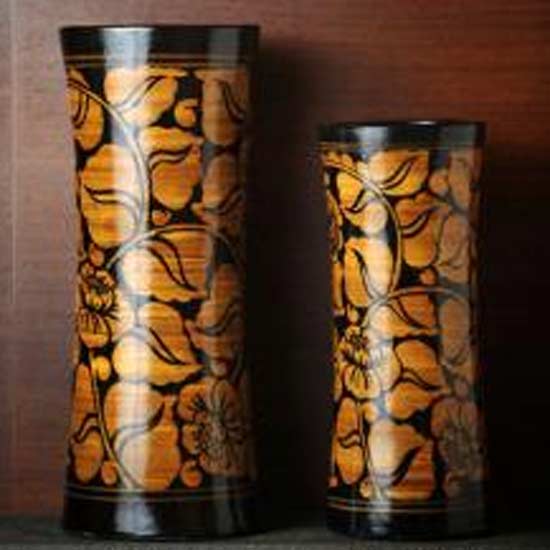 Showcased here are vases that are individually handcrafted. They are also hand-painted with delicate craftsmanship. There are flowery patterns on the vases. They come with a lacquer top coat which gives a sophisticated touch.