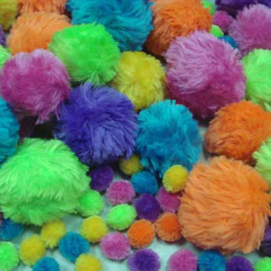 Shown here are fluffy balls in fancy colors. Various sizes are available for selection. These fluffy balls are eye-catching and exceptionally durable.
