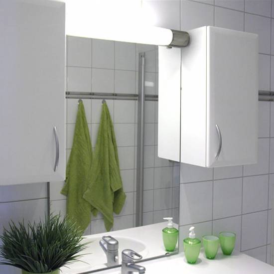 This is a fluorescent lamp fixture that can be fixed on to the wall or ceiling. The fluorescent lamp is cylindrical in shape. Simply designed, the fluorescent lamp is functional and practical.