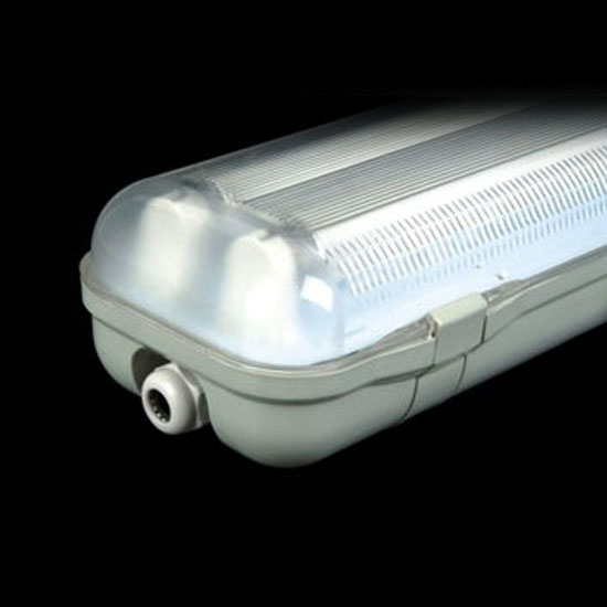 This fluorescent light fixture with two light tubes can efficiently brighten up large spaces. The waterproof design is excellent for a huge variety of settings. This luminaire will satisfy you with its high output and excellent efficiency.
