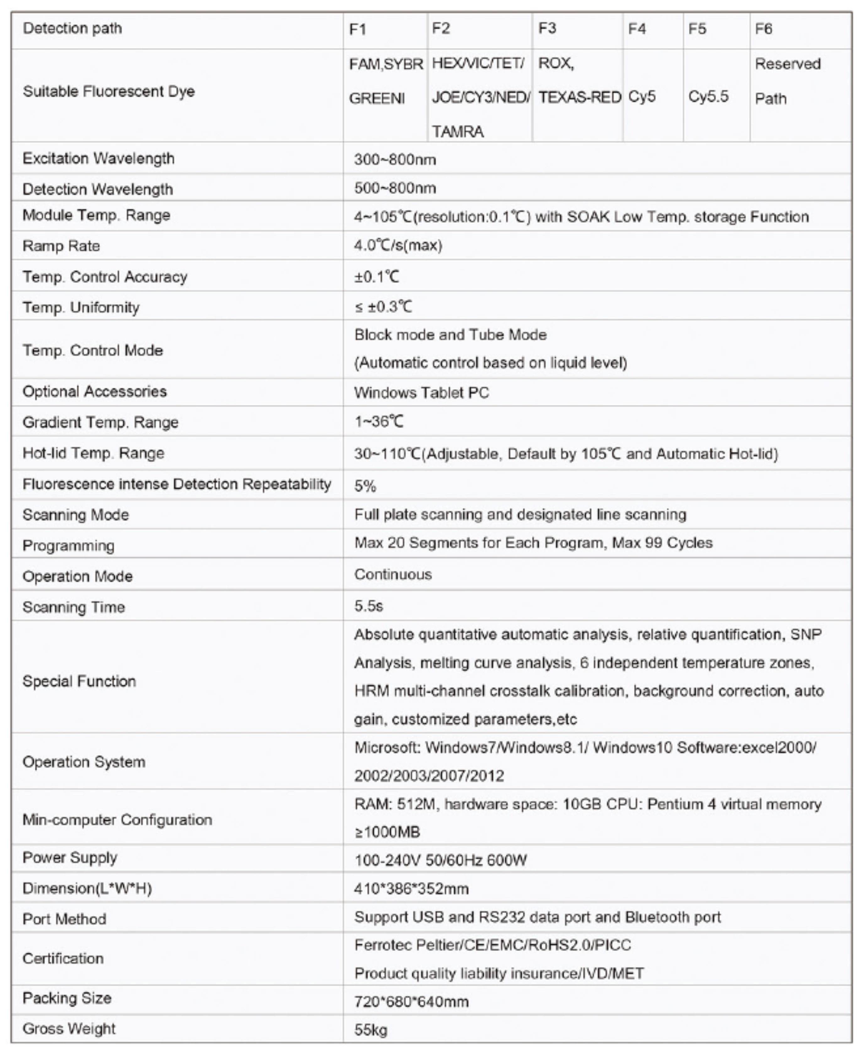 * 6 channels fluorescence detection, no cross talk between different channels.