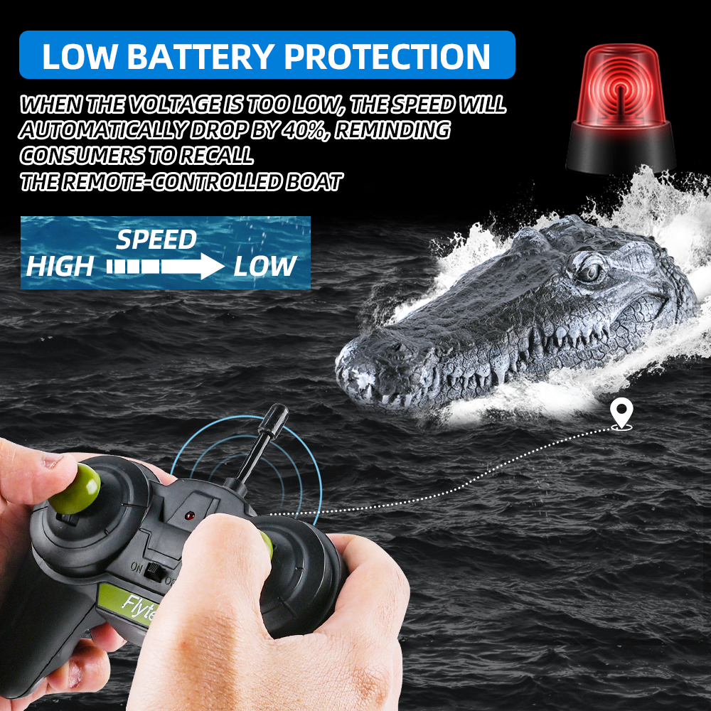 4. Low-voltage protection, when the voltage is too low, the speed will automatically drop by 40%, reminding consumers to recall the remote-controlled boat