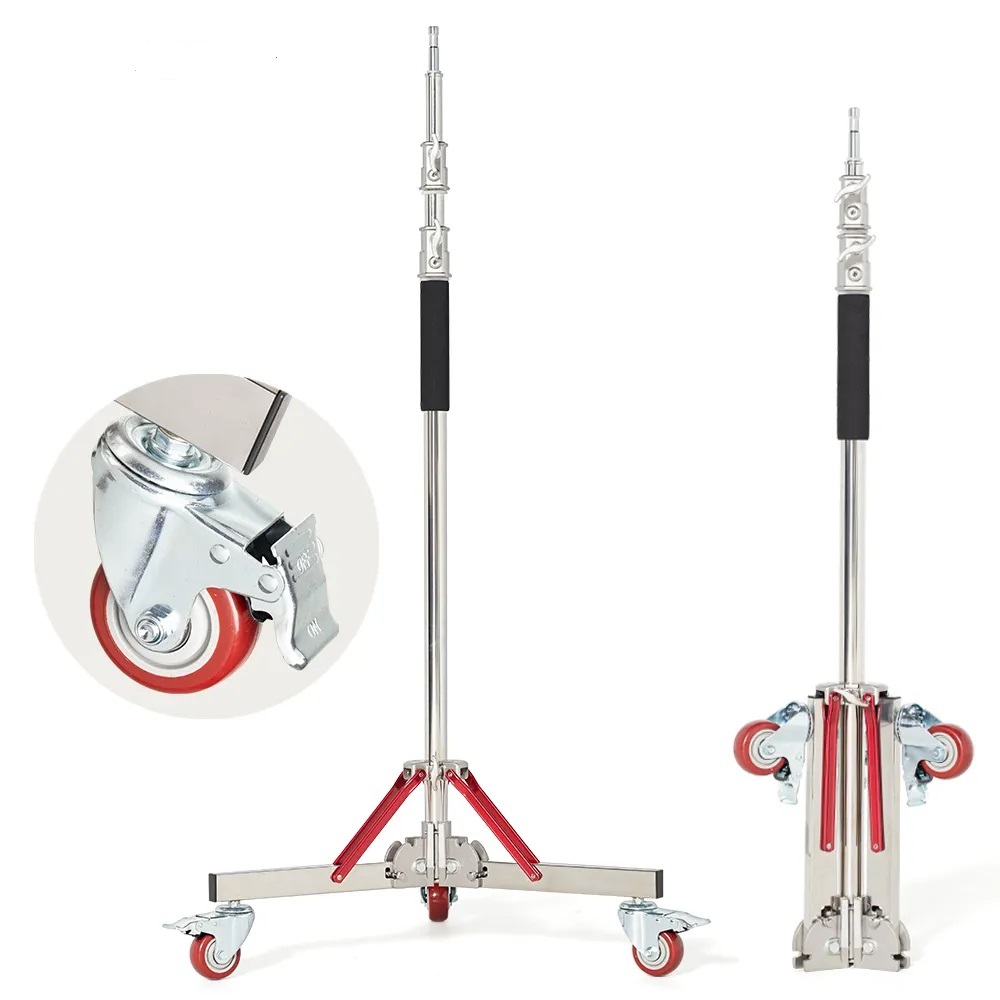 ★【Tripod Stand with 360° Casters】 Equipped with 360° swivel casters for convenient mobility, this rolling tripod from Focus allows you to glide your heavy equipment on the floor without dragging and lifting. Step-on brakes lock the casters and keep the tripod stationary while in use. Rubber wheels protect the floor from scratches