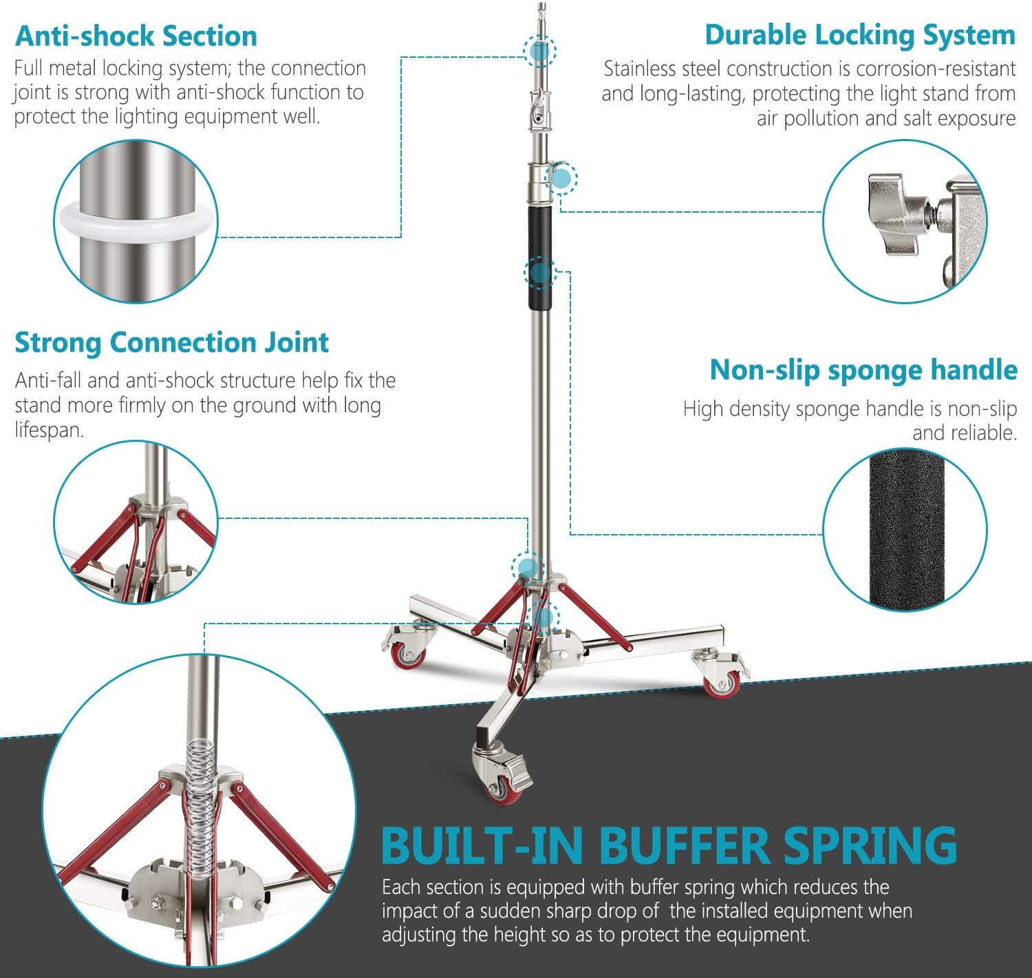 ★【Universal Compatibility】 The universal spigot mounts strobes, monolights, ring lights, reflectors, softboxes, and others. Ideal for shooting indoors and outdoors, this rolling tripod is essential for photographers, videographers, filmmakers, and the likes