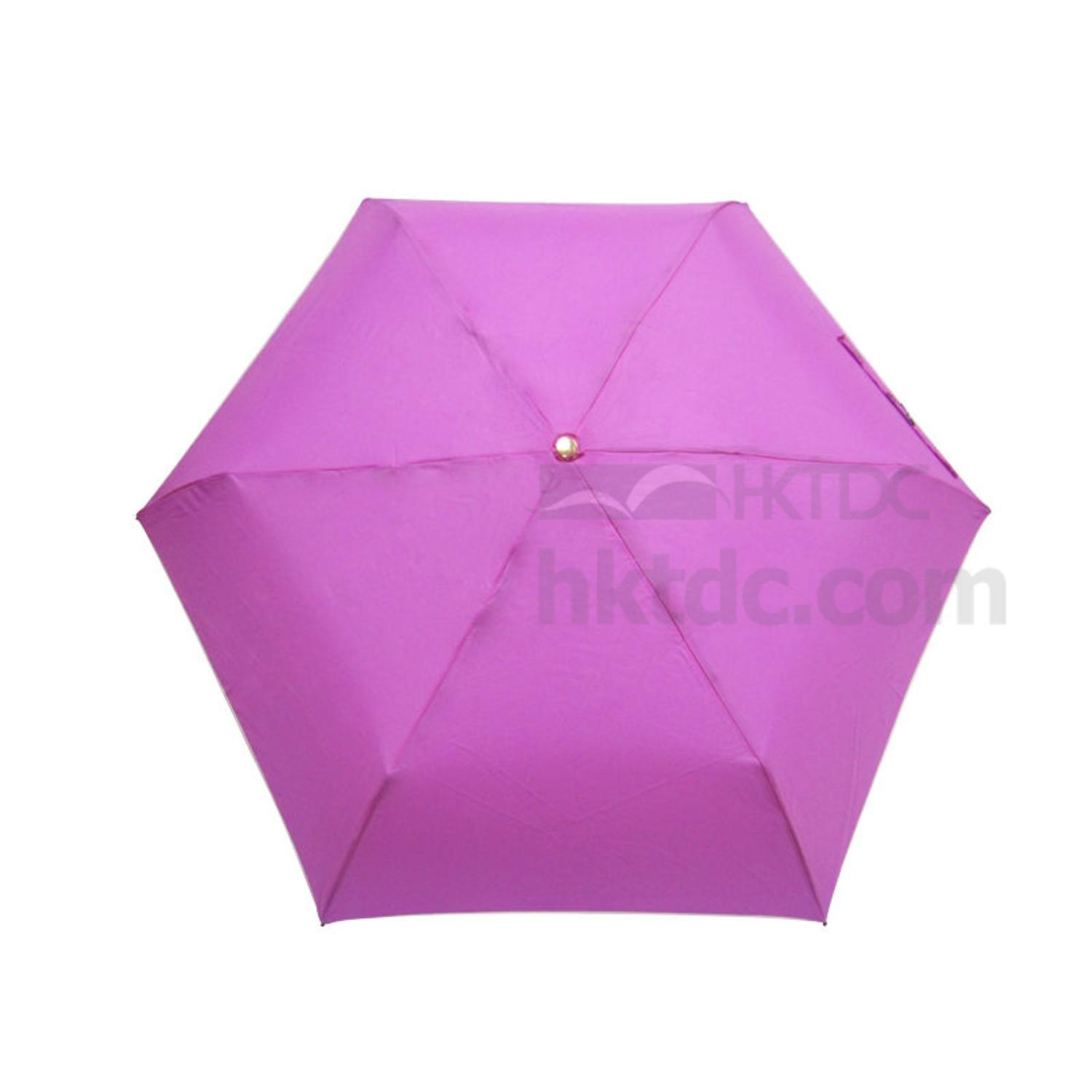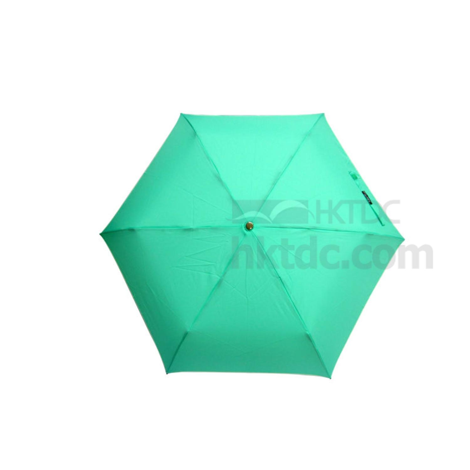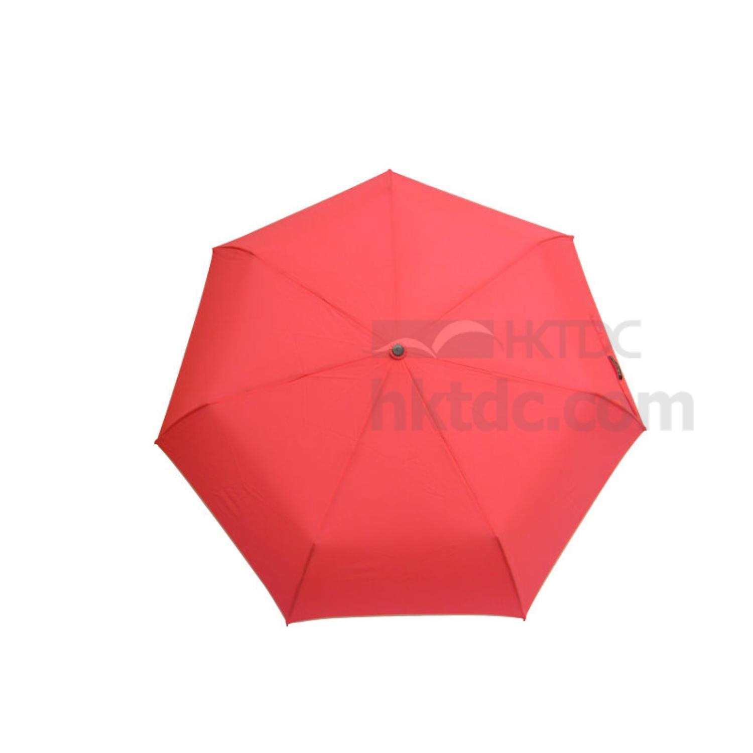 The high-performance polyester pongee fabric of this fold umbrella takes on a UPF 30+ design with excellent water repellent qualities to protect you from sudden rain and nasty sunrays. Its robust 6-rib construction further prompts durable use.
