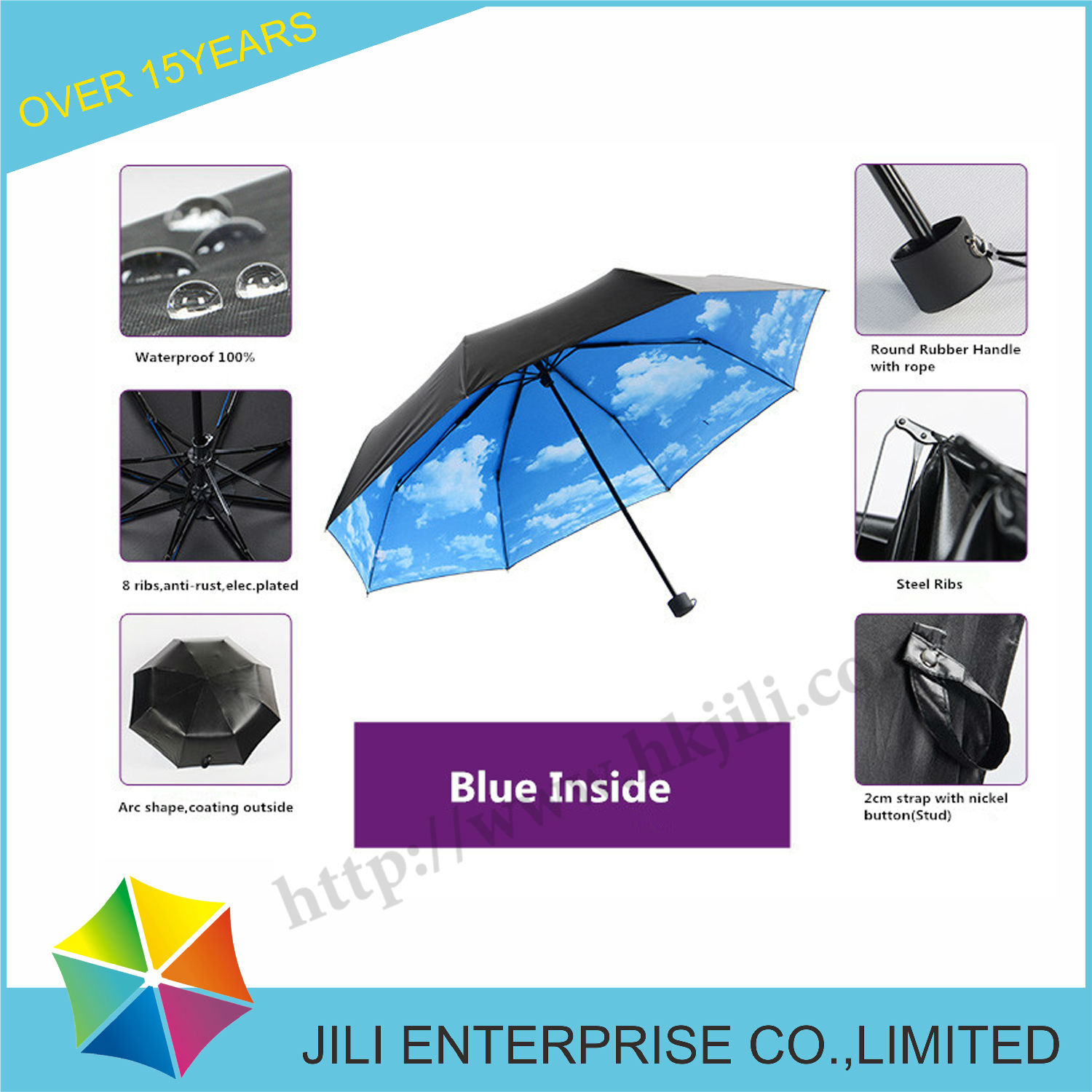 Fabric: 190T Pongee black coating--Blue Sky Design Inside,UV protecting