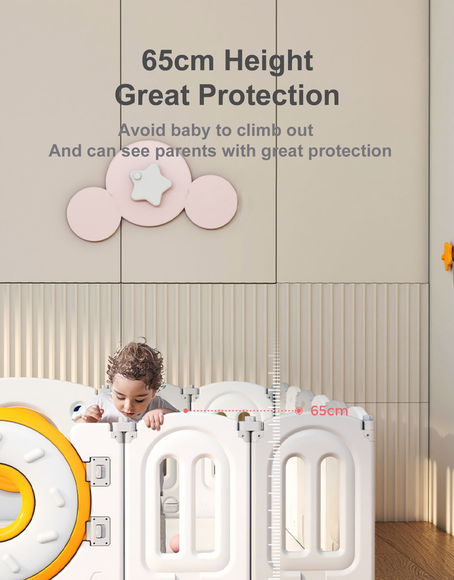 Foldable Baby Playpen Safety Play Yard for Toddler Kids Activity Centre Indoor or Outdoor Cute Donut Shape Kids' Playpens