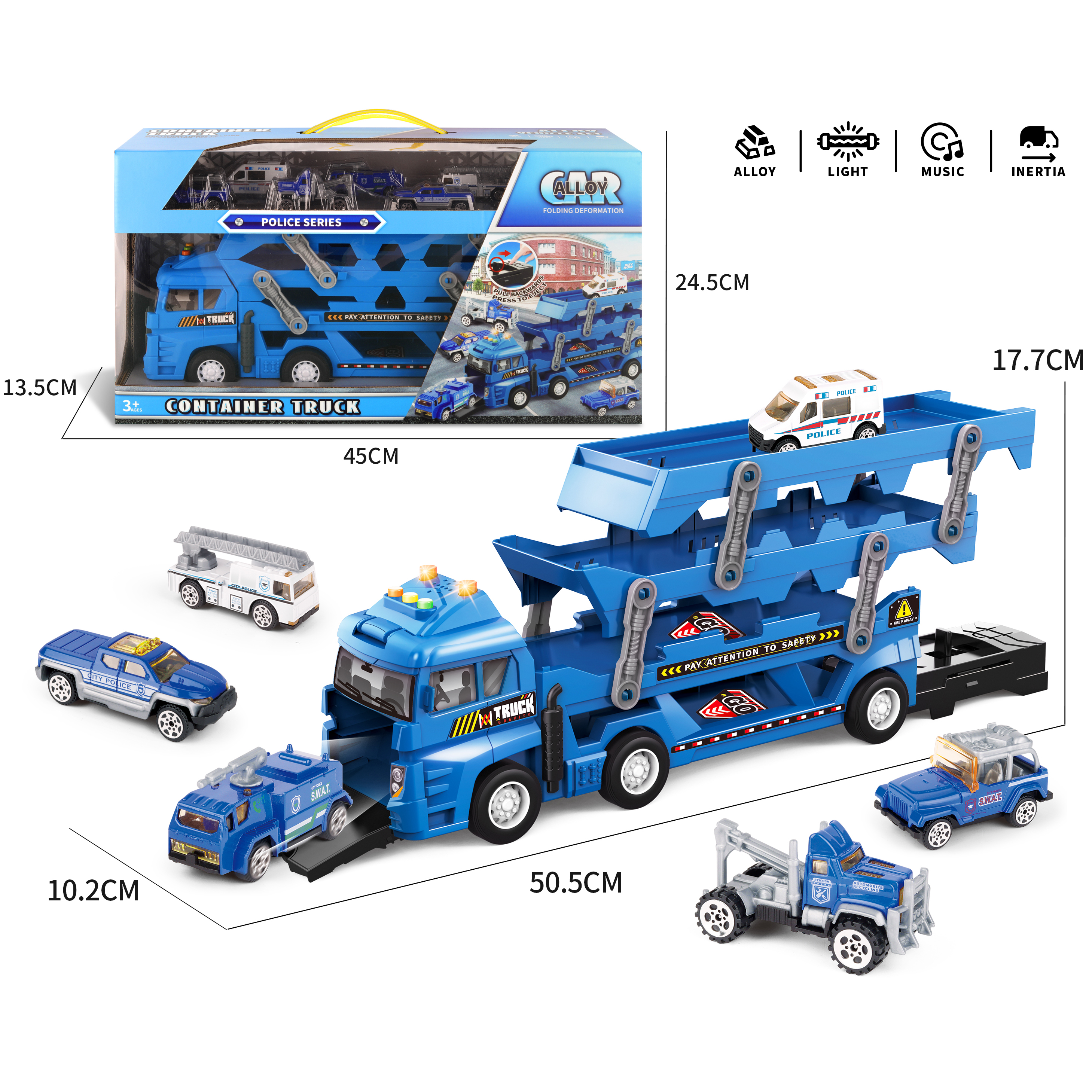 Foldable Diecast alloy truck with 6PCS alloy cars with light and sound
