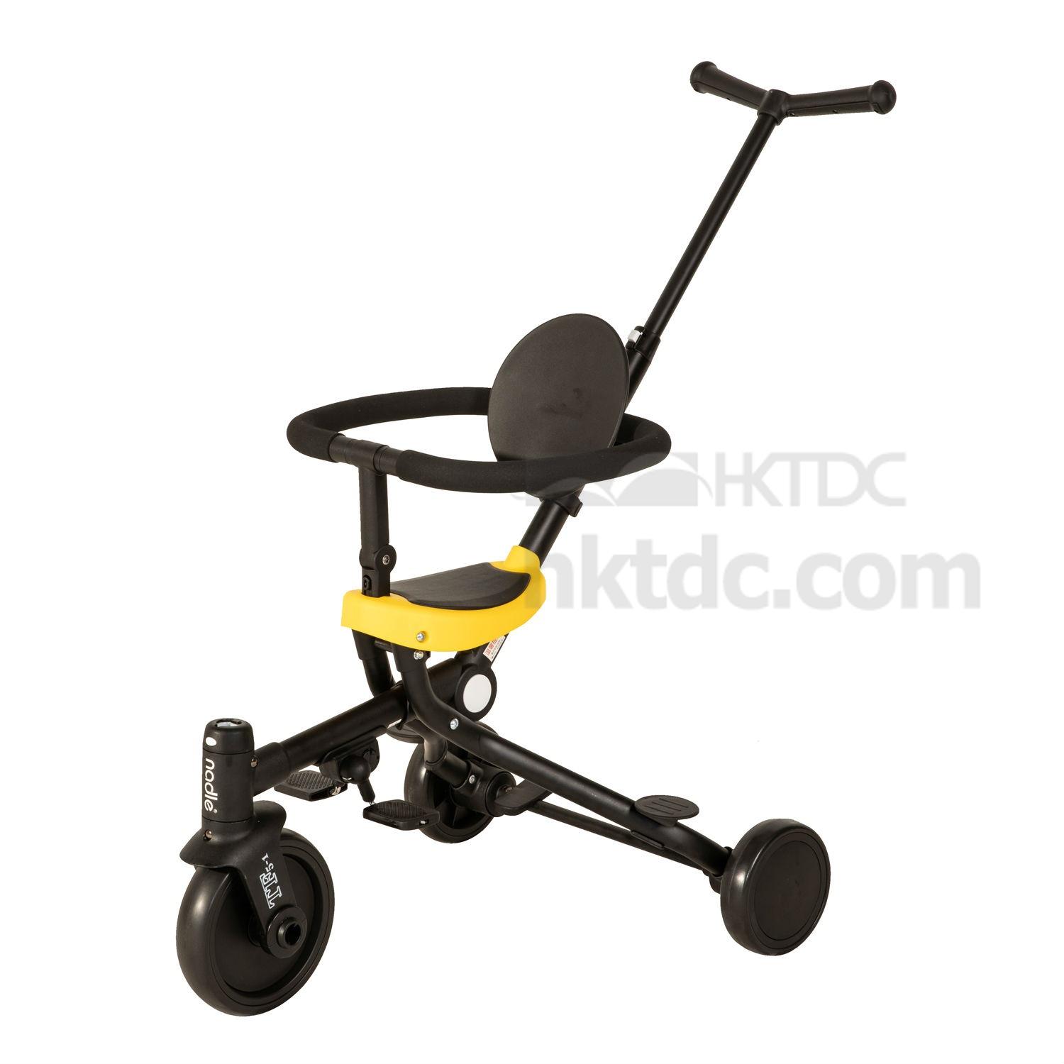 With a press of a button, this foldable toddler trike can be transformed into a stroller. It is made of aluminum alloy pipes with reinforced nylon and has rubber wheels. This foldable trike stroller flaunts a durable construction and is excellent for children to play with.