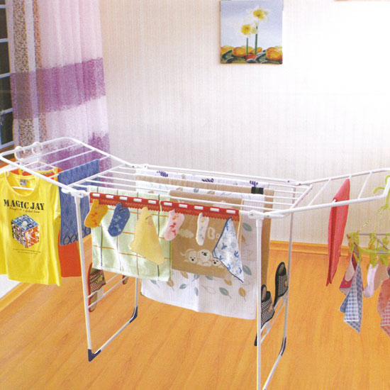This folding aliform laundry rack comes in the shape of two wings. It provides a large space for drying clothes. The laundry rack is foldable to save space in your home.
