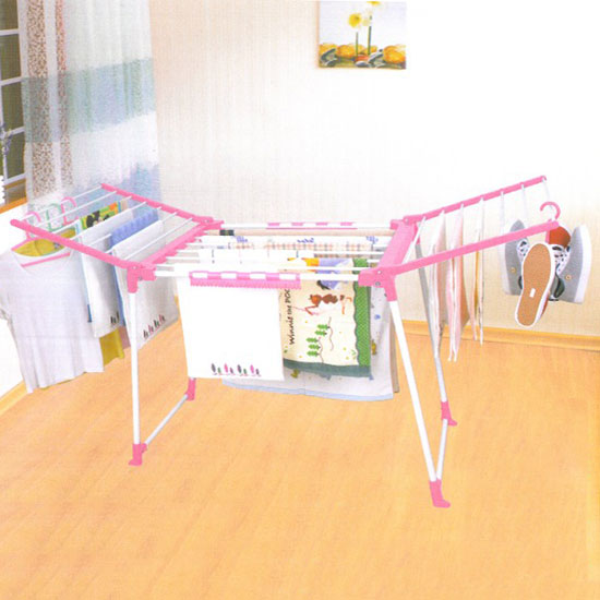 This folding aliform laundry rack comes in the shape of two wings. It is designed for hanging wet clothes for drying after washing. The folding laundry rack is perfect for space-demanding settings.