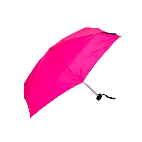 This umbrella comes with a hot-pink canopy for an eye-catching look. The ribs are carefully made for added strength and durability. With its wrist strap, this umbrella is easy to carry around.
