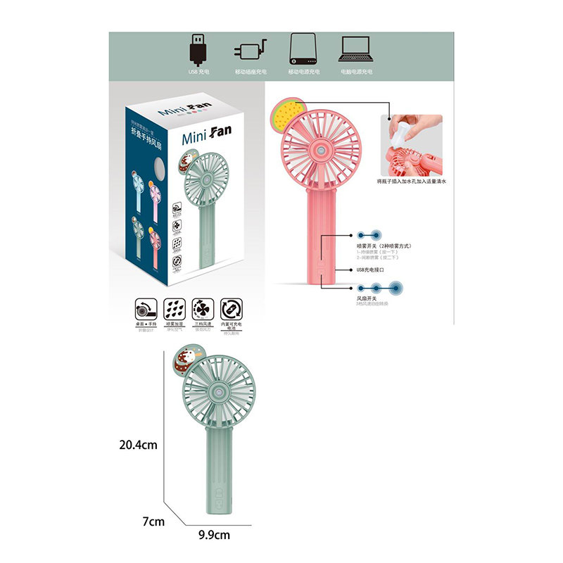Pink, light blue, dark green, watermelon red (four colors mixed) 1200MAH lithium battery (18650) third gear wind speed (slow, medium fast) second gear spray (continuous, intermittent) color box packaging