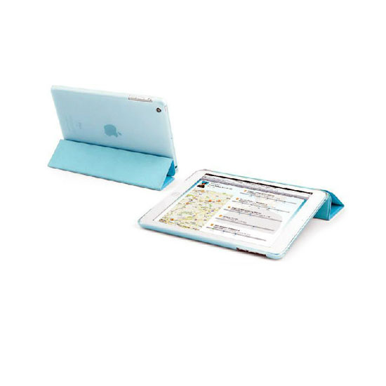 This leather iPad Air cover features a folding stand at the back. The well-designed case is slim and light in weight. Its internal lining protects the iPad screen from scratches.