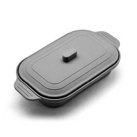 This gray toned food container is made of silicone for durability. It is fitted with two handles and a lid for users’ convenience. This practical food container is ideal for home use.