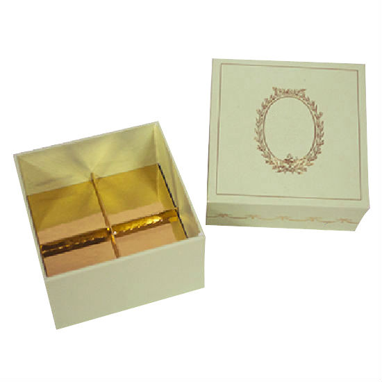 This food gift box showcases an attractive design in a two-piece construction. The interior of this packaging box is crafted with four compartments to store a variety of confectioneries securely in place. This paper packaging box is perfect for packing any gourmet products.