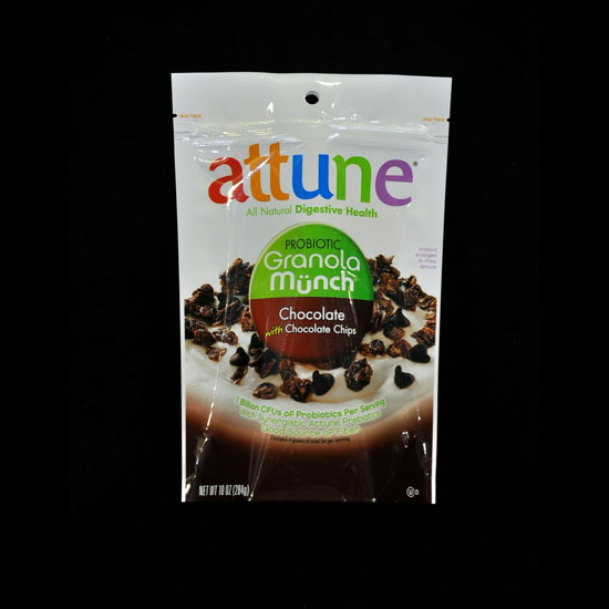 This is a stand-up food packaging bag printed with colorful patterns and texts. The 3-side sealed bag is suitable for packaging food in frozen or liquid state. The bag can be plain or printed with customized graphics, logos and texts for promotional use.