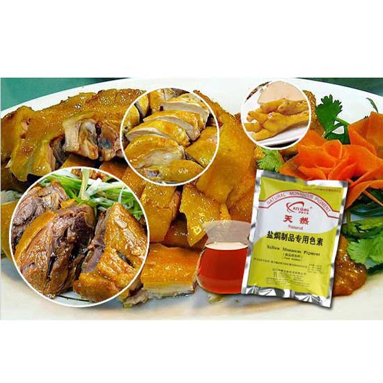 The food pigment is designed for preparing salt-baked chicken cuisines. It is finely extracted and processed in a systematic way. The high purity makes it stand above the rest.