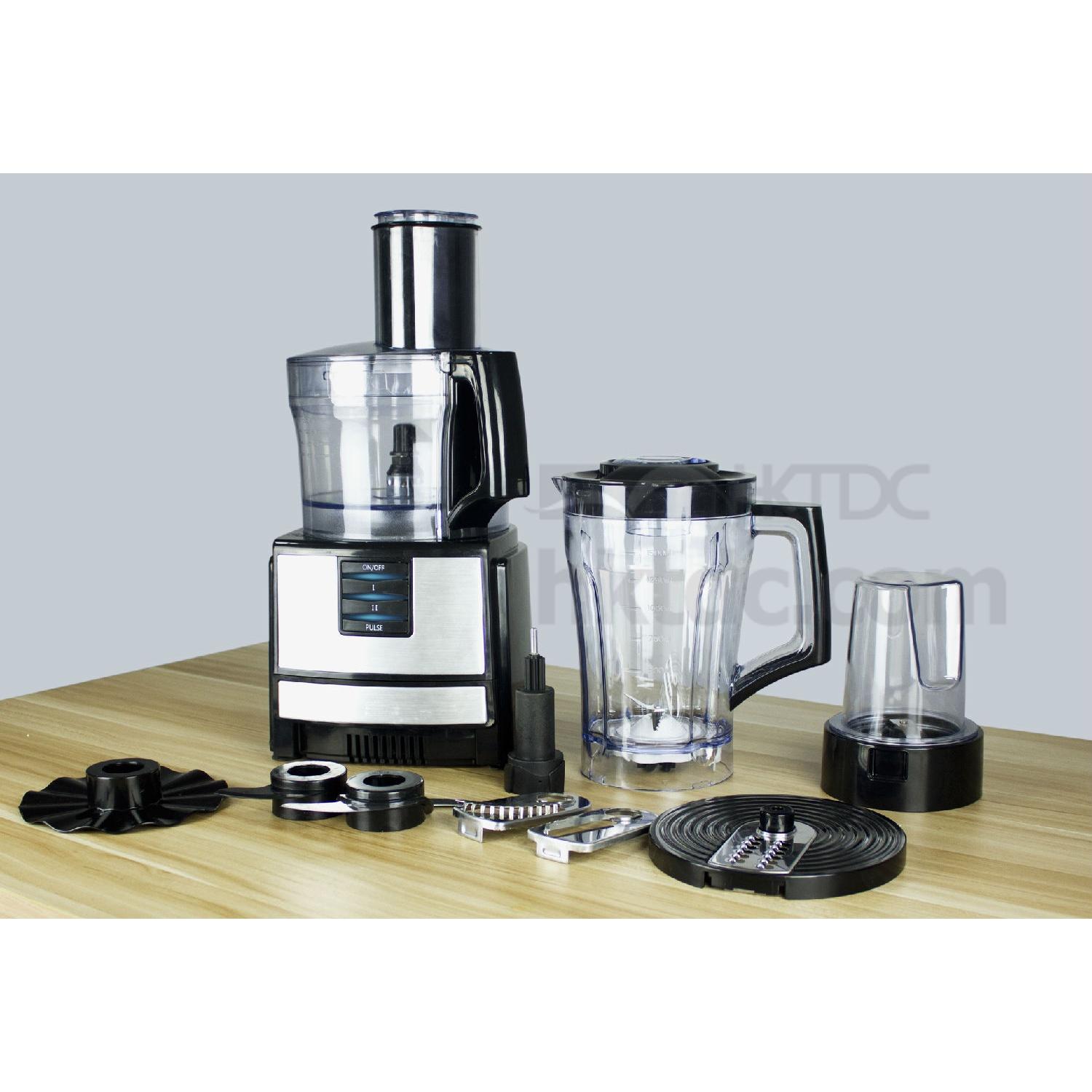 This food processor is great for making pastes, purees, soups, cake bases, etc. The processor is built with a high-power motor for a high rotational speed. With its narrow-necked cover, the food processor allows you to easily add flour and other dry ingredients while mixing.