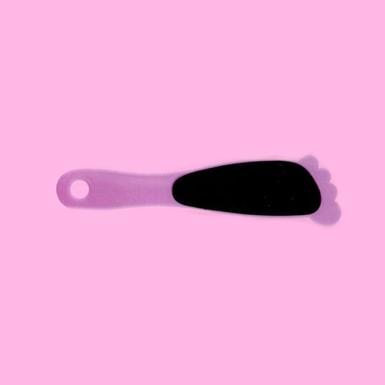 This is a foot file designed in a cute foot shape. It features an ergonomic handle for a comfortable grip. This item is made of quality material for long-lasting use.