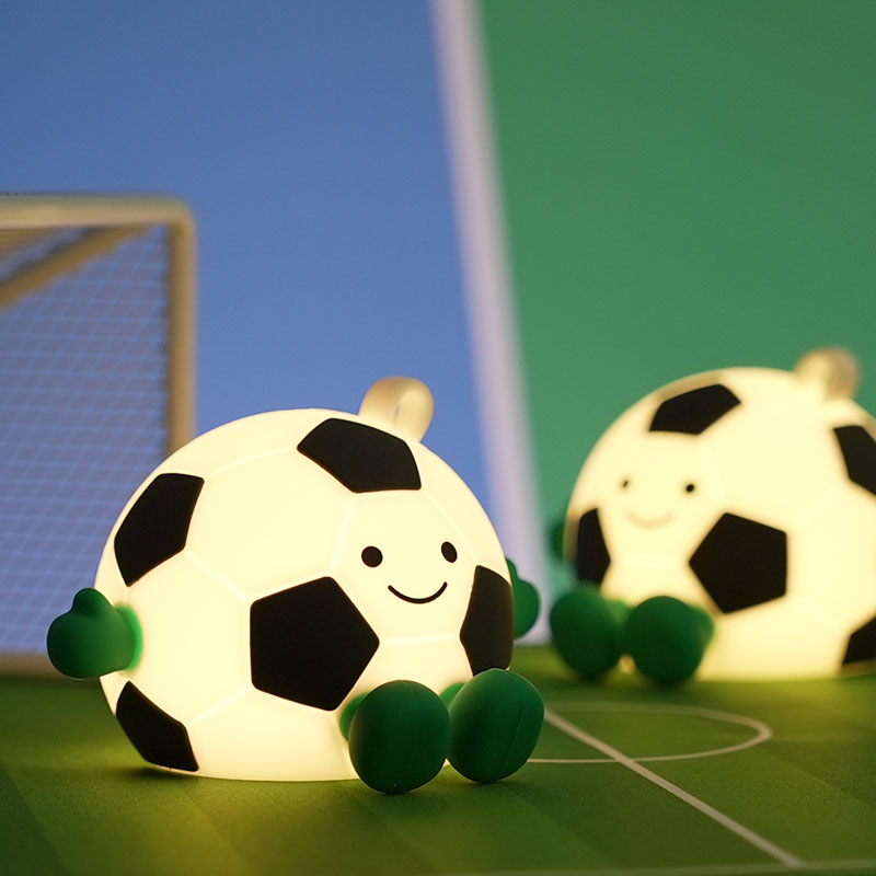 Made of soft silicone/ABS/HIPS. Adorable football shape with a happy face, durable & cute decor for bedrooms.
