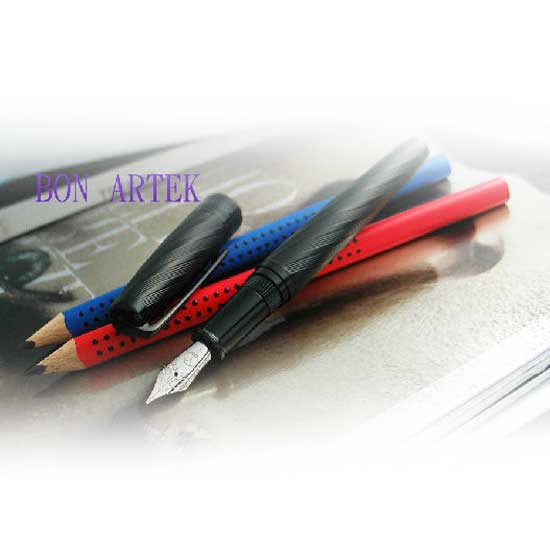 This deluxe fountain pen features a black body with spiral salon patterns. Professionally engineered, it promises users a smooth and comfortable writing experience. This refined fountain pen is a great gift choice.
