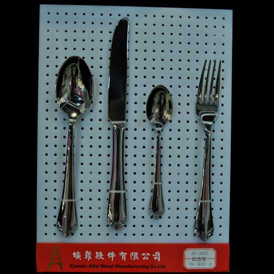 This tableware set includes a knife, a fork and two spoons in different sizes. They boasts high-quality and rust-free material for a long lifespan. The finely polished surface is easy to clean.