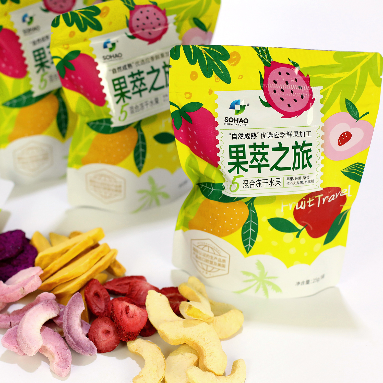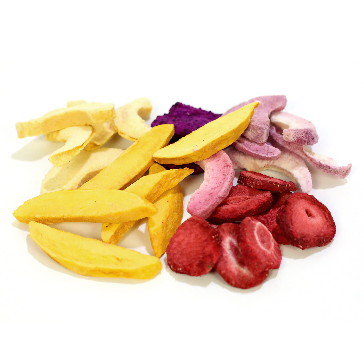 Freeze-dried Mixed Fruit, a tantalizing ensemble of apple, mango, strawberry, pitaya, and peach, masterfully preserved through advanced freeze-drying techniques to retain the material’s original nutritional value. Savor an irresistible medley of flavors, delightful crunch, and unmatched nutritional value in every bite. Perfect for snacking, toppings, or culinary exploration, this delectable fruit mix delivers a fascinating combination of garden-fresh tastes and colors. Experience the unparalleled fusion of convenience and nutrition with this delightful ensemble.