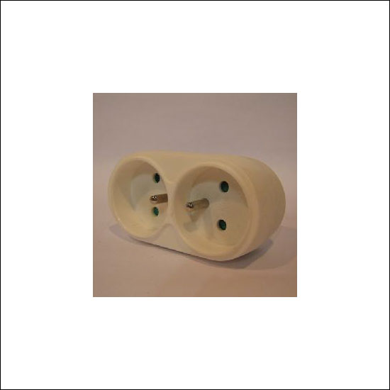 Showcased here is a lightweight and compact plug adaptor designed for easy storage and portability. With two outlets, this French adaptor features a built-in fuse to protect your electronic devices against surges and spikes.