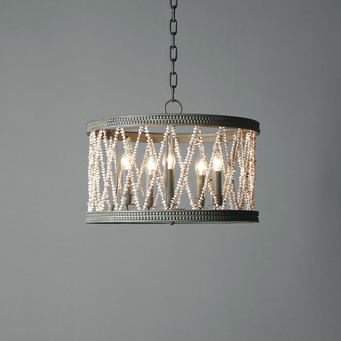 French Romantic Style Pearl Iron Round Candle Pendant Lights