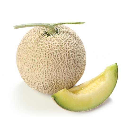 Displayed is a fresh melon harvested from a clean and professional farm. Grown with much care, this melon is sweet and juicy. This fresh melon is a great ingredient for dessert.
