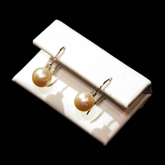 Showcased is a pair of earrings completed with selected Fresh Water pearls. They appeal to you with their apparent luster and sleekness. The accessories are also encrusted with shimmery loose diamonds.